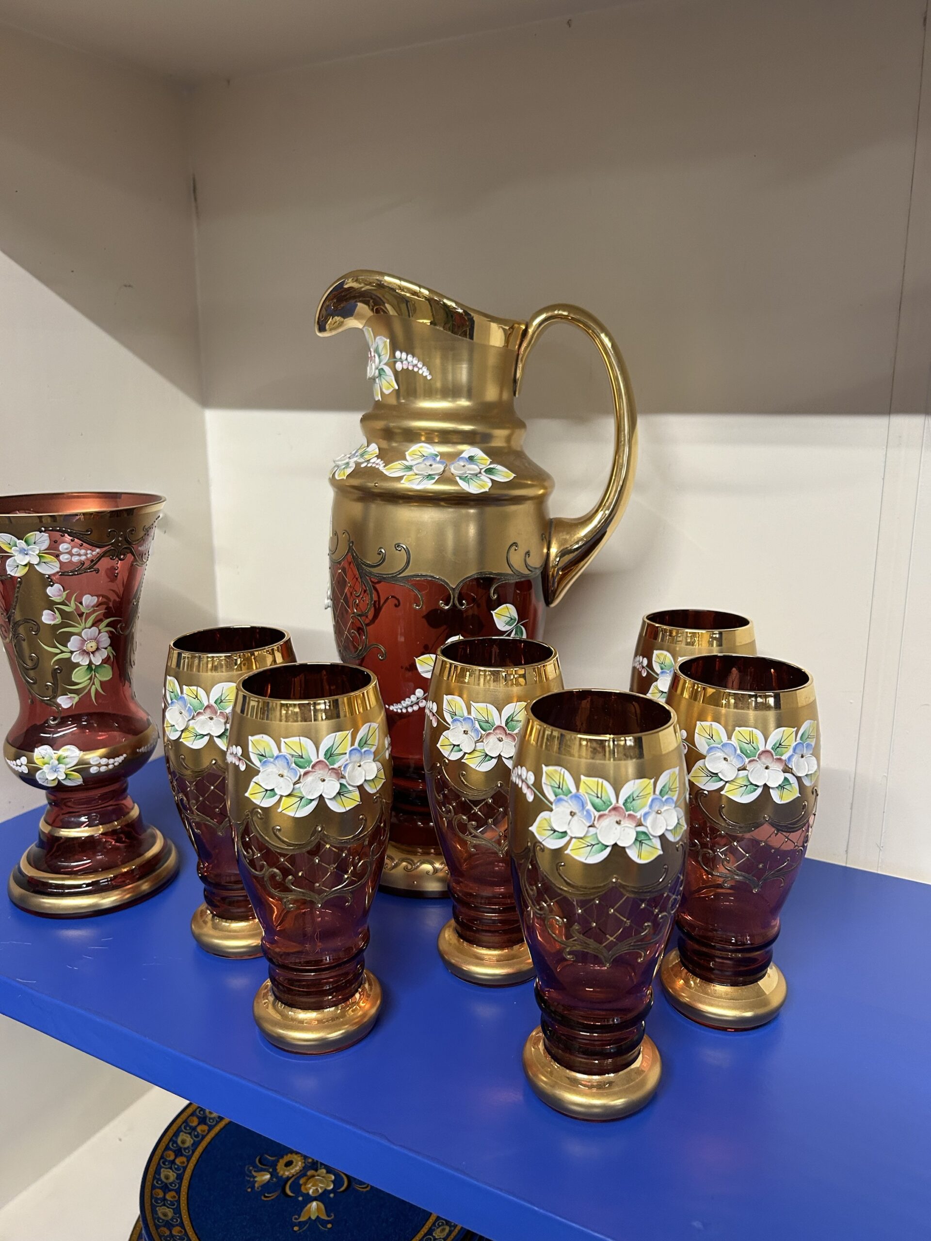 Set van diverse kristallen glazen vaas en serveerkan